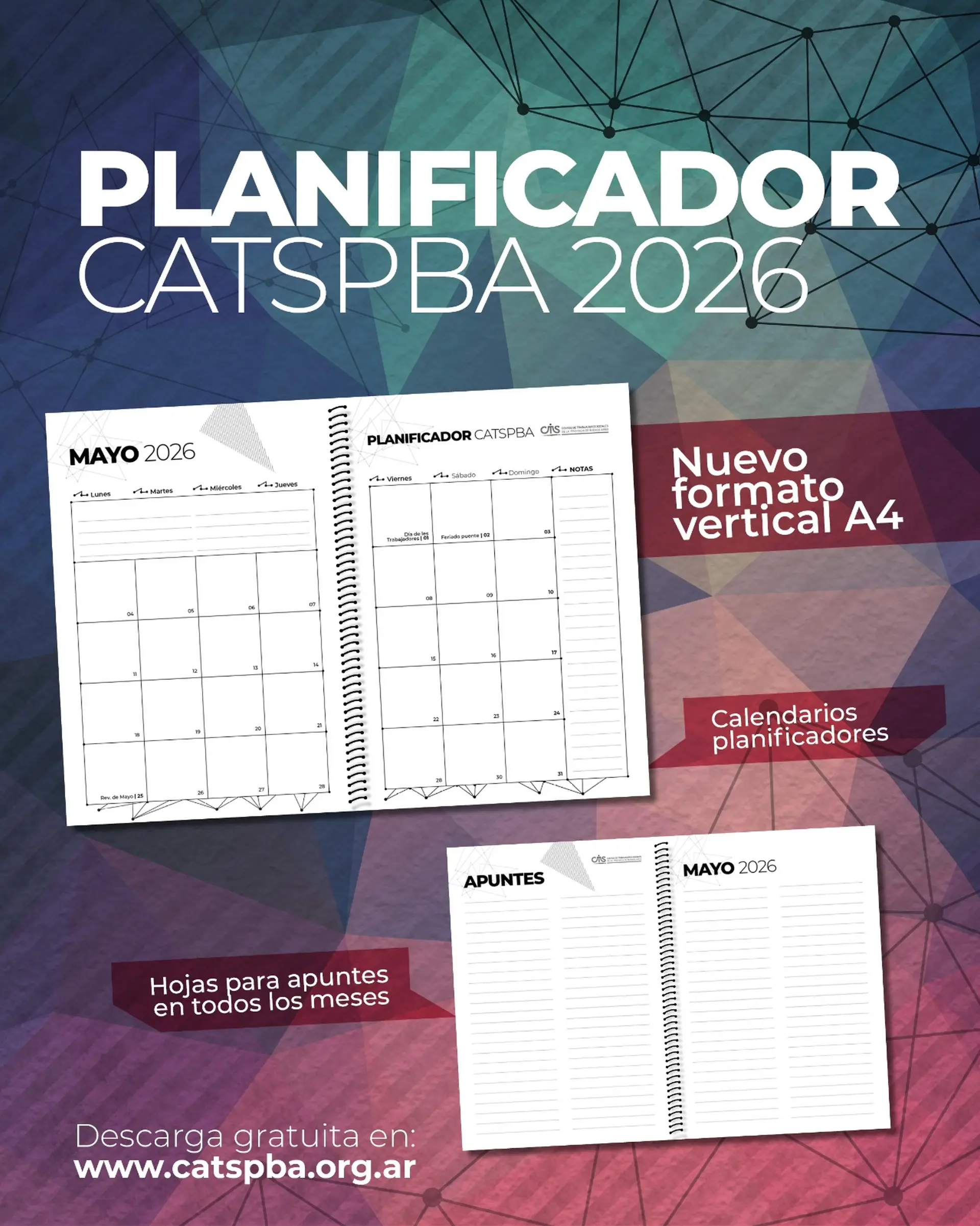 Ponemos a disposición el Planificador CATSPBA 2026 para descargar e imprimir. El mismo se encuentra diseñado en tamaño A4, incluye hojas para apuntes y calendarios planificadores mensuales.