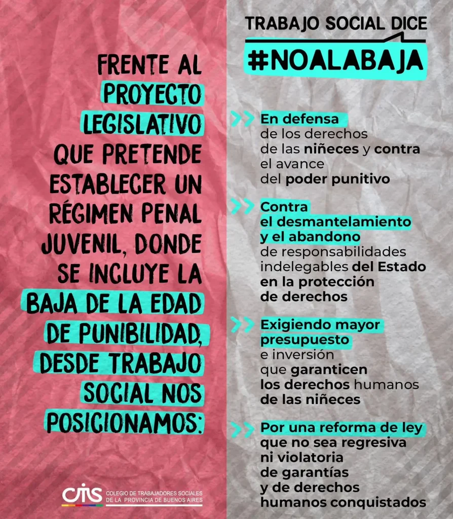 TRABAJO SOCIAL LE DICE «NO» A LA BAJA EN LA EDAD DE PUNIBILIDAD